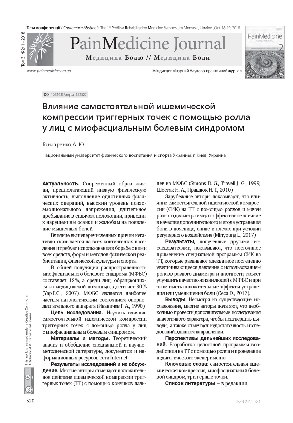 Влияние самостоятельной ишемической компрессии триггерных точек с помощью ролла у лиц с миофасциальным болевым синдромом