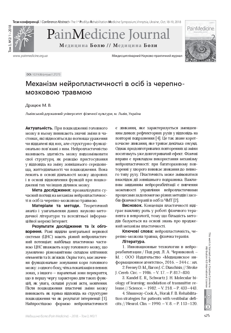 нейропластичність, черепно-мозкова травма, фізична терапіяAbstract