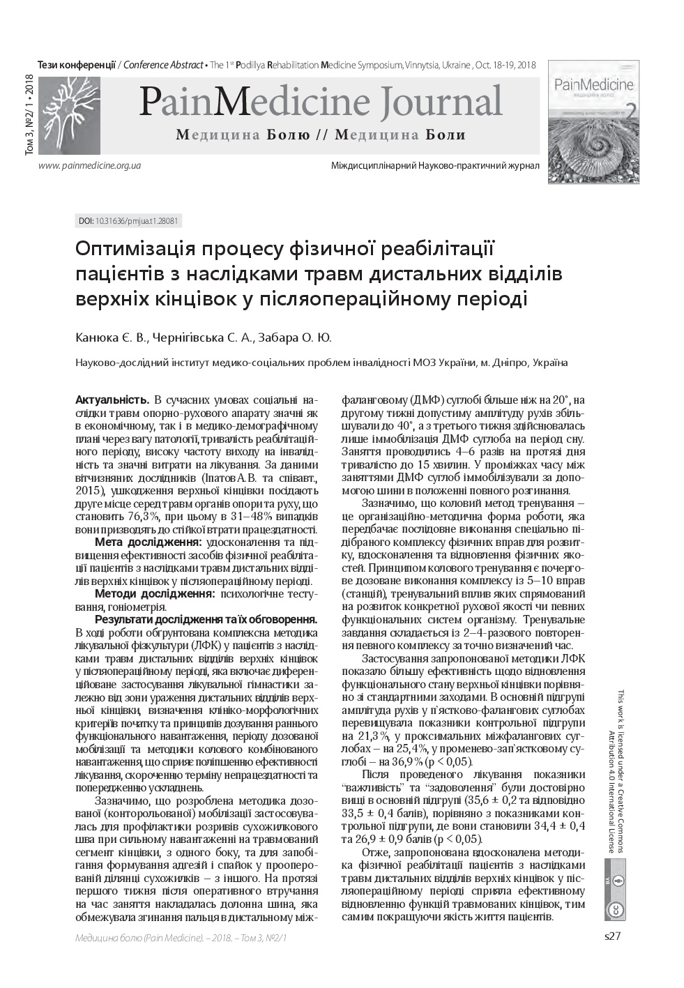 Оптимізація процесу фізичної реабілітації пацієнтів з наслідками травм дистальних відділів верхніх кінцівок у післяопераційному періоді