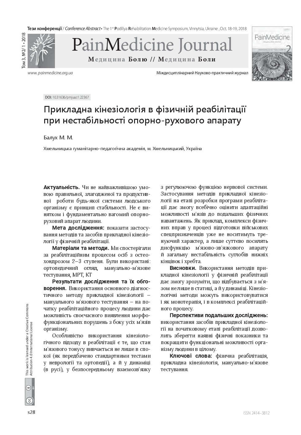 фізична реабілітація, прикладна кінезіологія, мануально-м’язове тестуванняAbstract