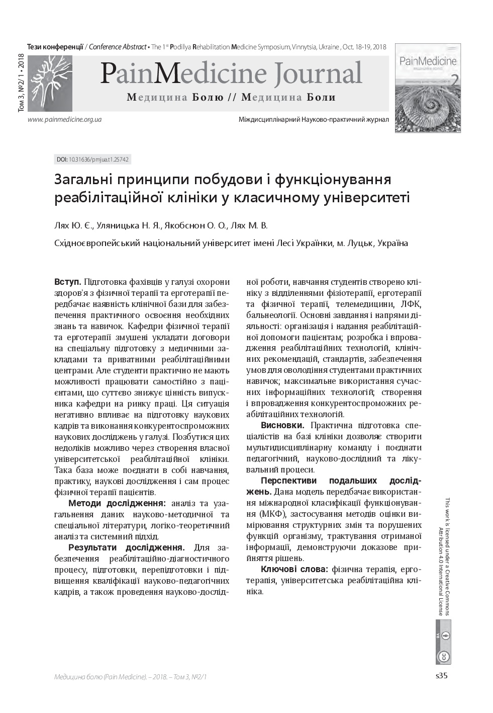 фізична терапія, ерготерапія, університетська реабілітаційна клінікаAbstract