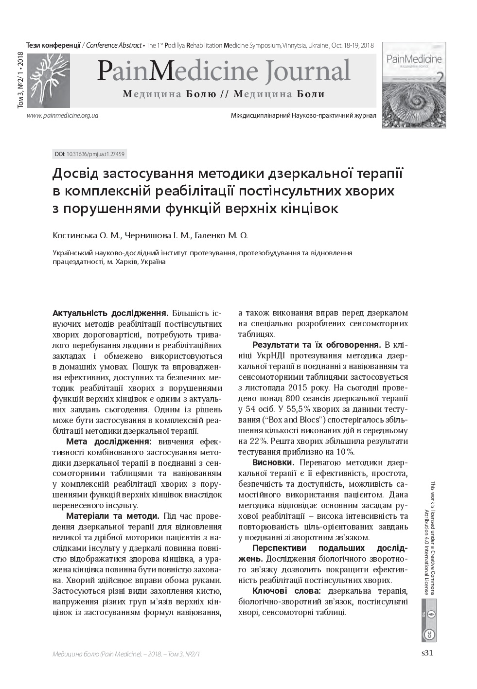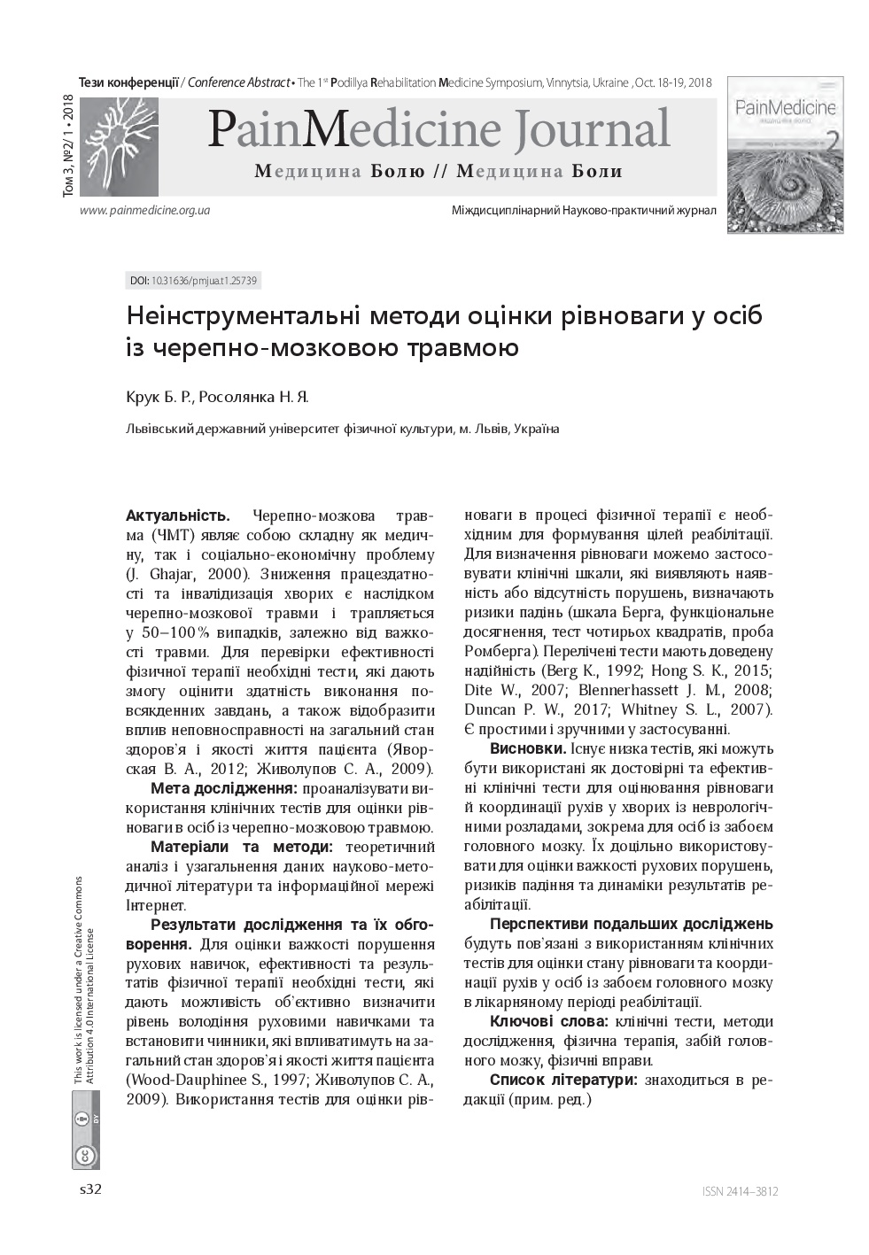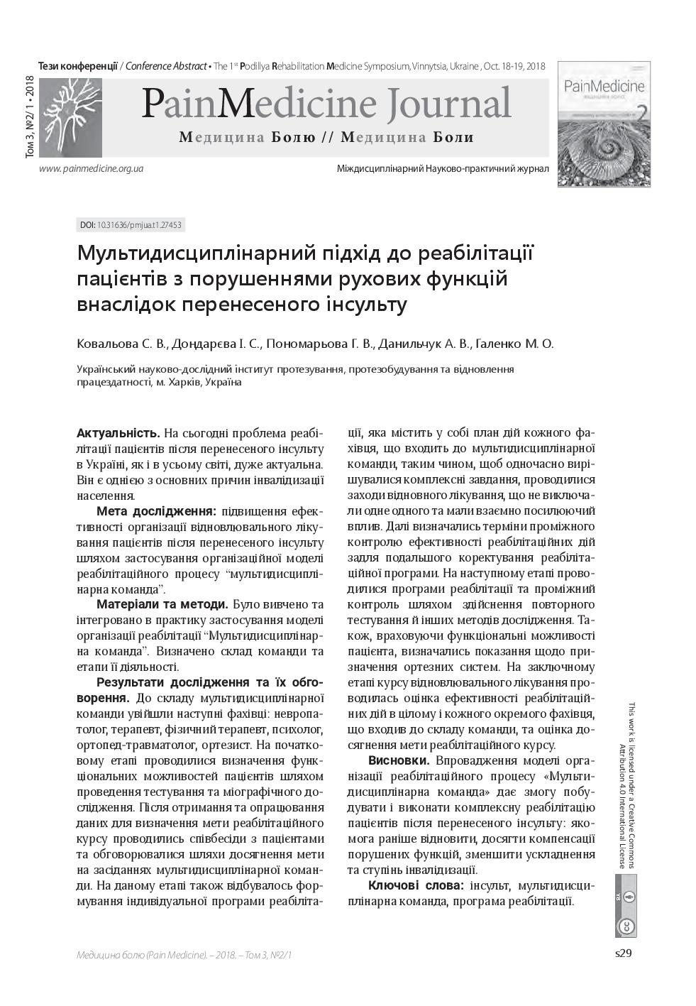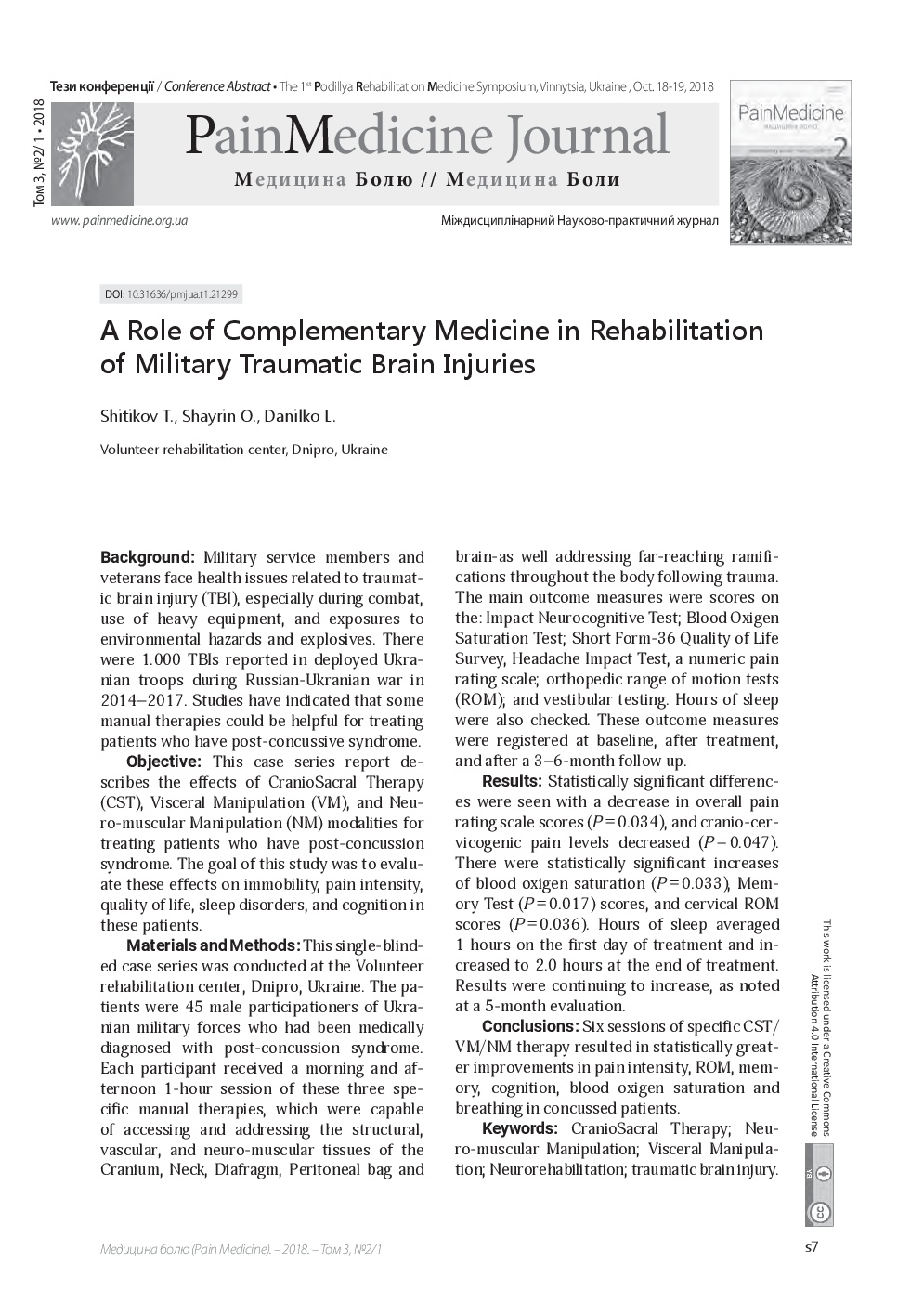 We invite you to read the collection of scientific publications of the First Podillya Rehabilitation Medicine Symposium (October 18-19, 2018, Vinnitsa, Ukraine), which were published in a special issue: Supplement 1 – Rehab Medicine – of multidisciplinary scientific and practical “Pain Medicine" journal (Vol. 3, No. 2/1, 2018)