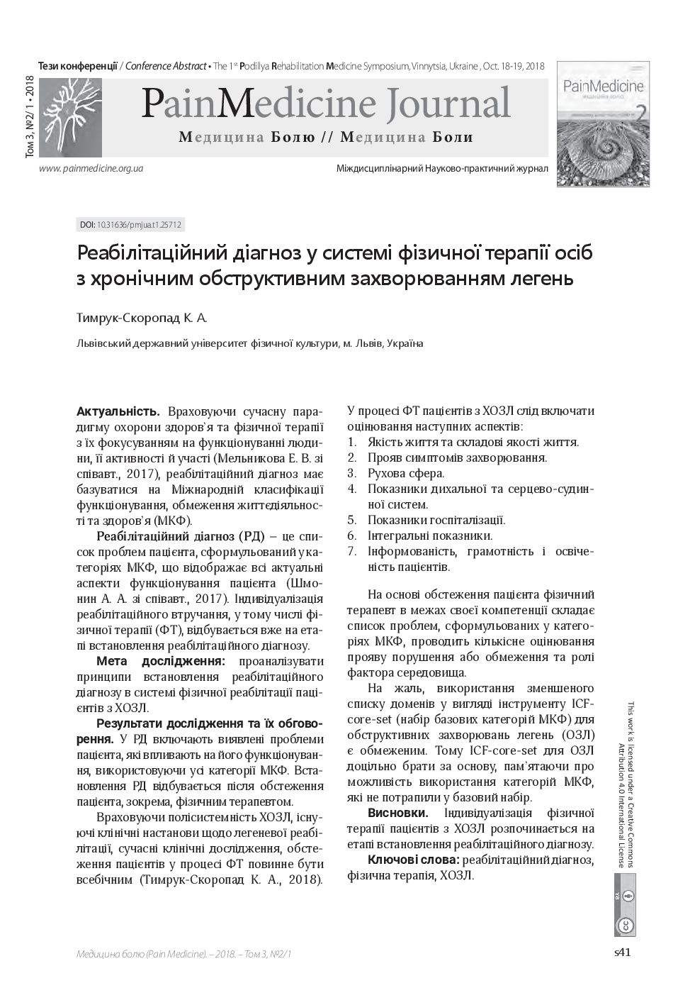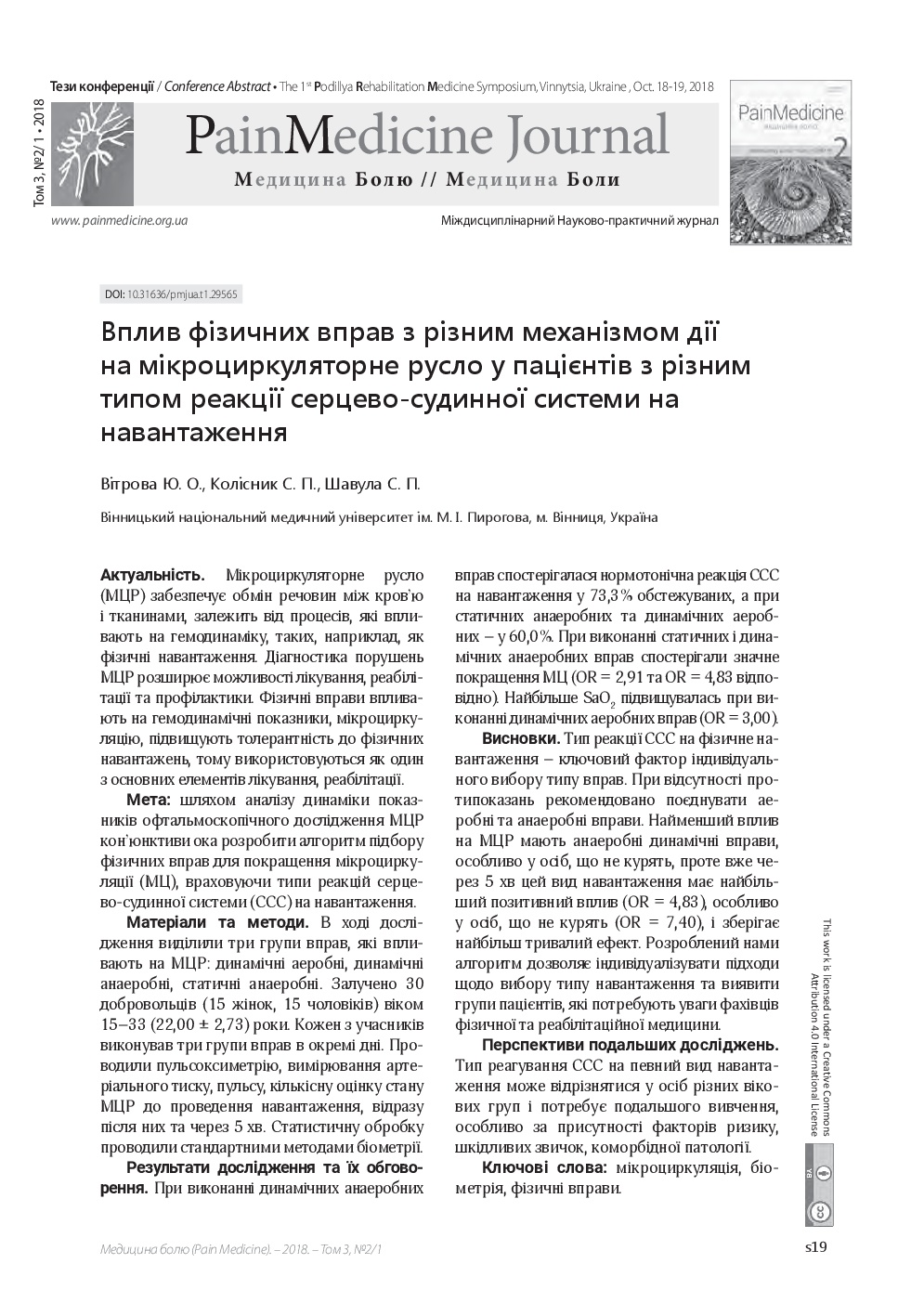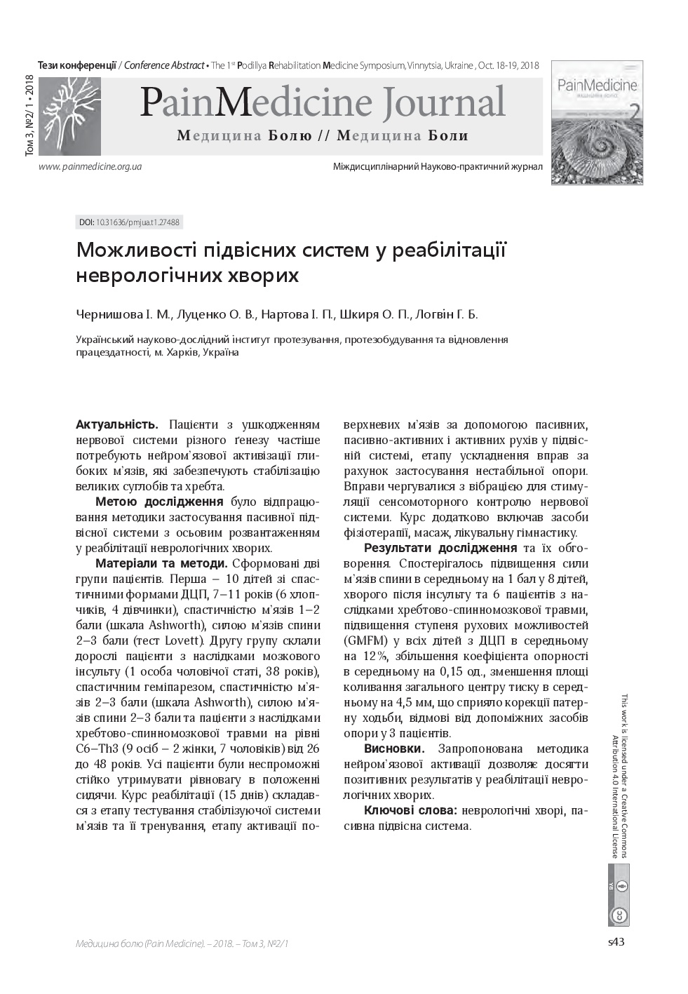 We invite you to read the collection of scientific publications of the First Podillya Rehabilitation Medicine Symposium (October 18-19, 2018, Vinnitsa, Ukraine), which were published in a special issue: Supplement 1 – Rehab Medicine – of multidisciplinary scientific and practical “Pain Medicine" journal (Vol. 3, No. 2/1, 2018)