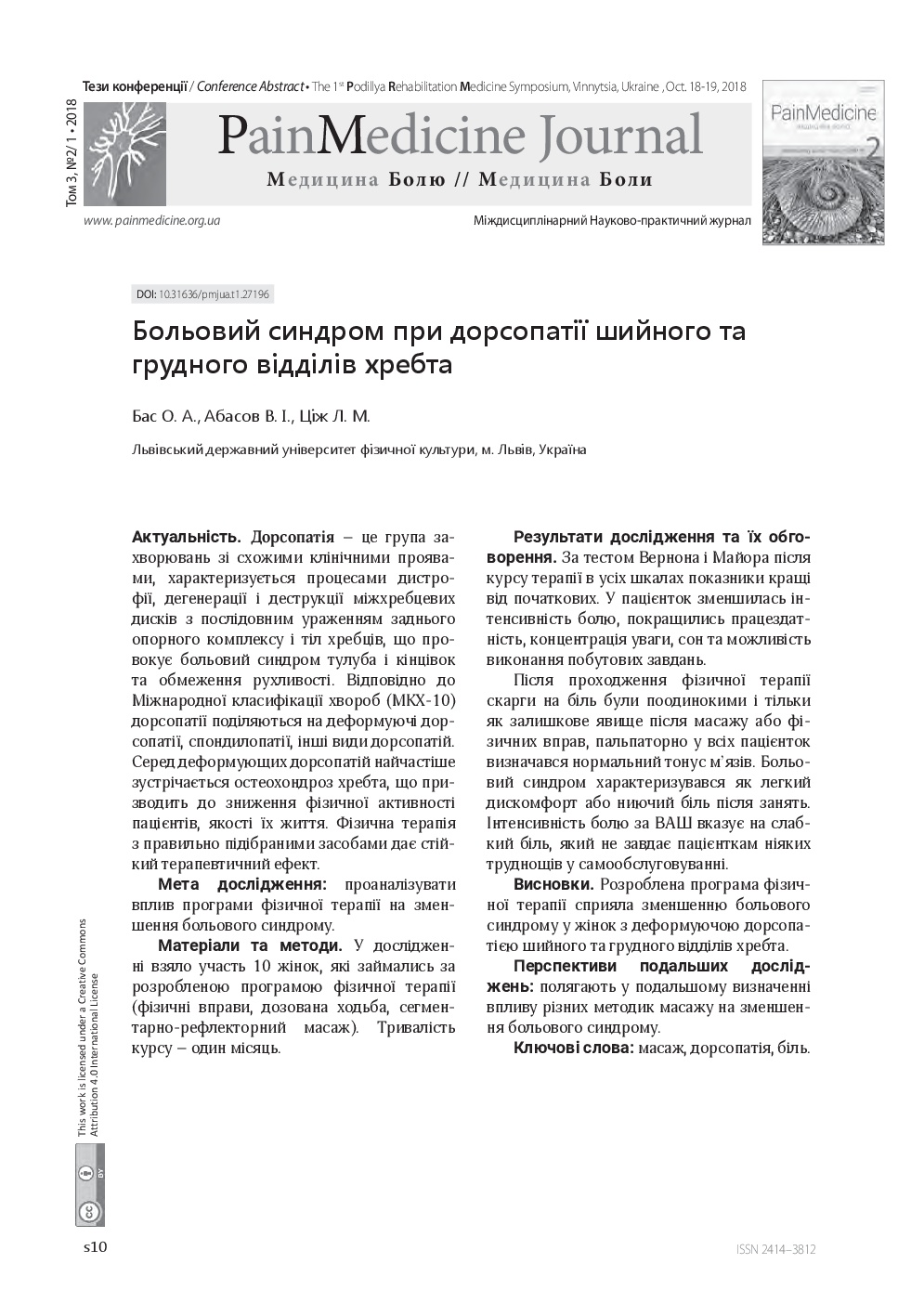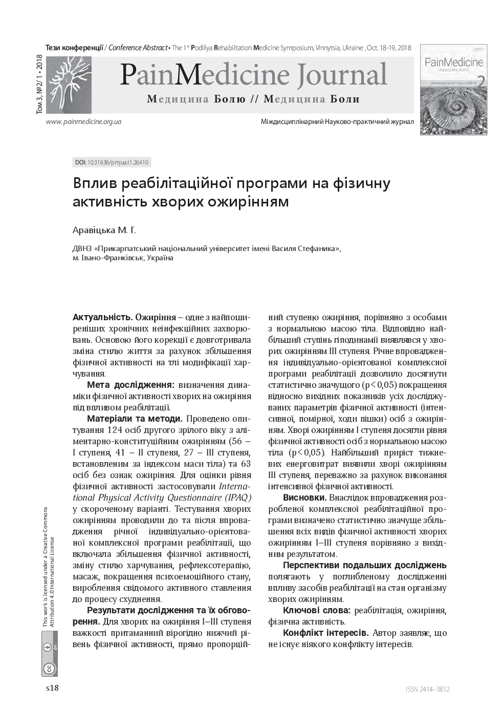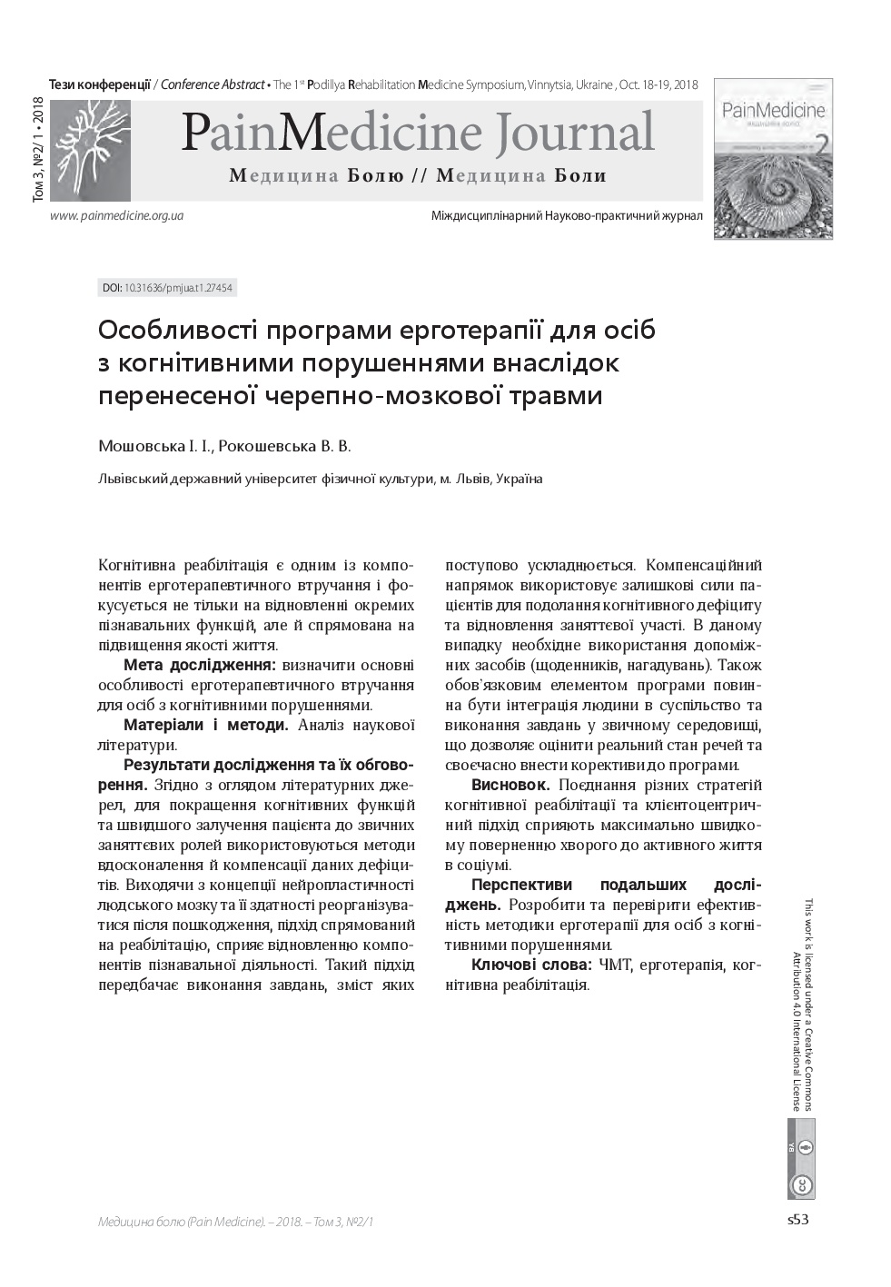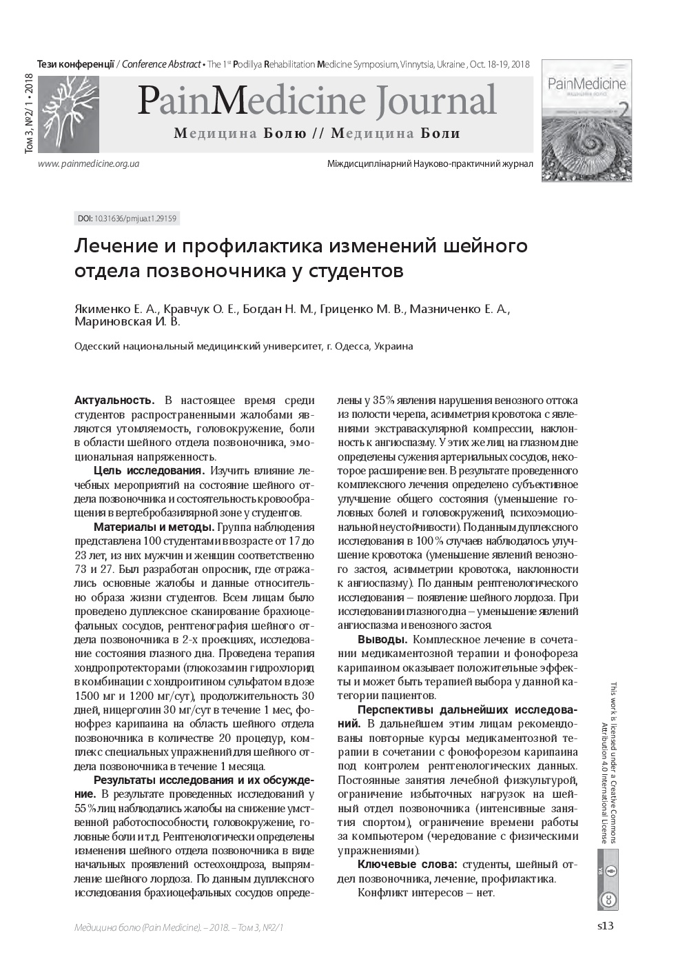 We invite you to read the collection of scientific publications of the First Podillya Rehabilitation Medicine Symposium (October 18-19, 2018, Vinnitsa, Ukraine), which were published in a special issue: Supplement 1 – Rehab Medicine – of multidisciplinary scientific and practical “Pain Medicine" journal (Vol. 3, No. 2/1, 2018)