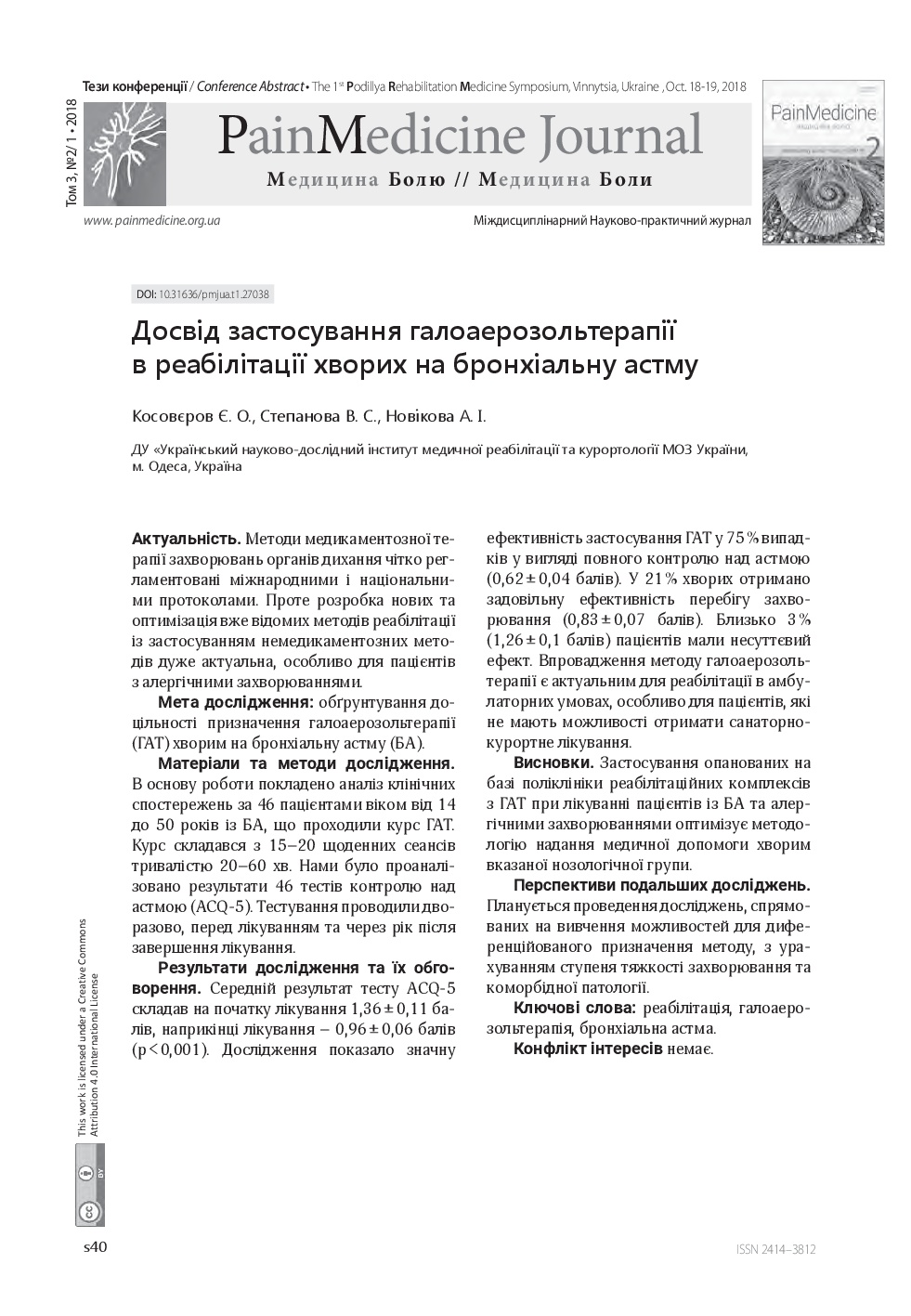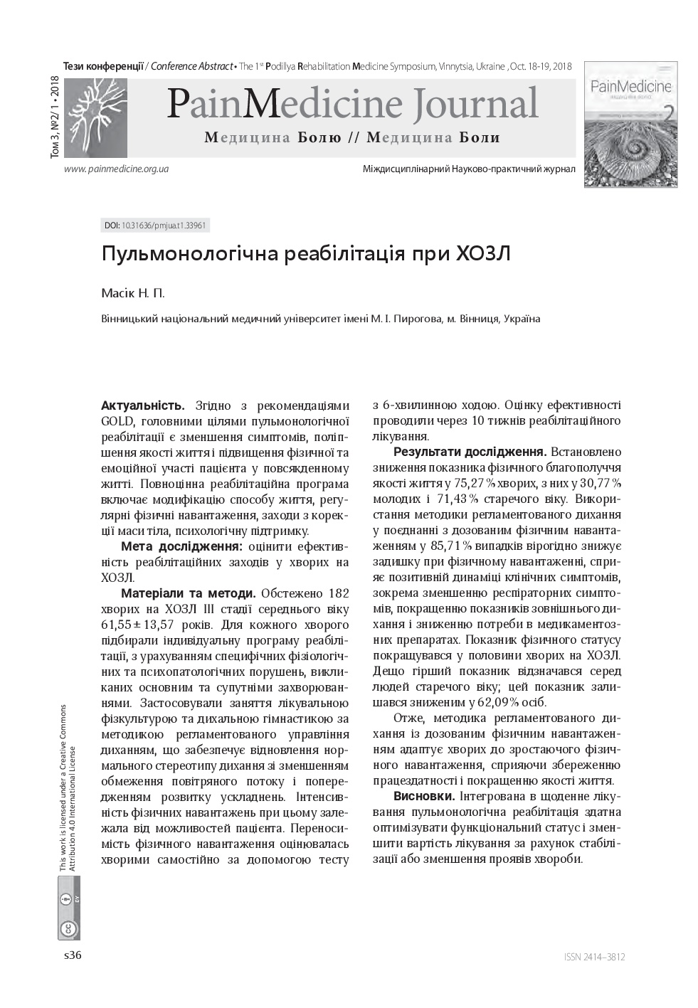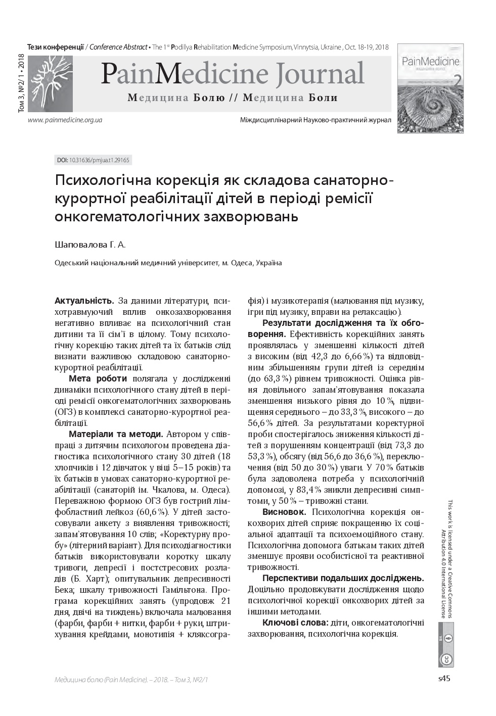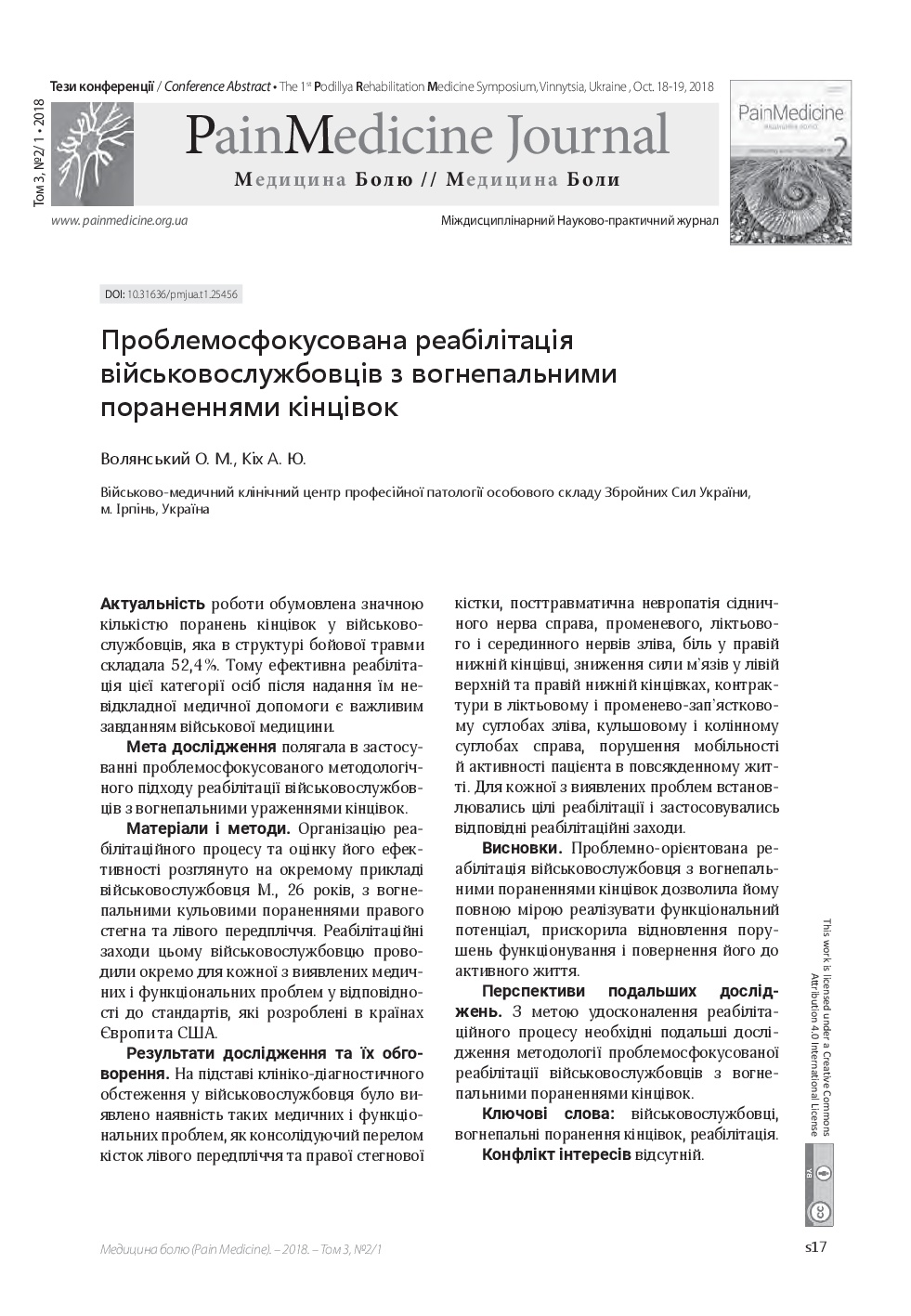 Vol. 3 No. 2/1 (2018): Pain medicine
