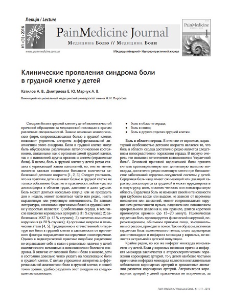 Клинические проявления синдрома боли в грудной клетке у детей