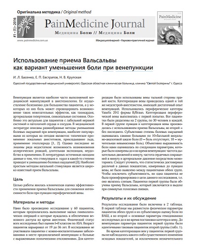 Использование приема Вальсальвы как вариант уменьшения боли при венепункции