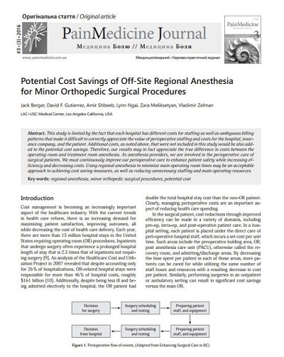 Potential Cost Savings of Off-Site Regional Anesthesia for Minor Orthopedic Surgical Procedures