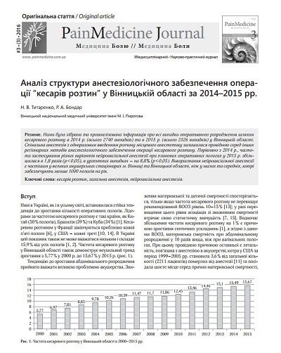 Analysis of the structure of cesarean section anesthesia in Vinnytsia region in 2014–2015 years
