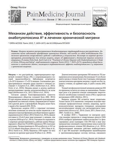 Механизм действия, эффективность и безопасность онаботулотоксина А* в лечении хронической мигрени