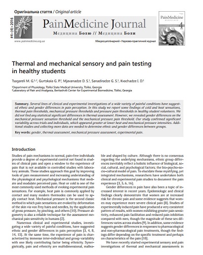 Thermal and mechanical sensory and pain testing in healthy students