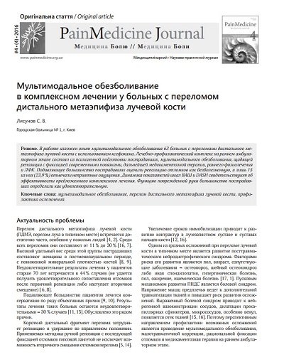 Multimodal analgesia in the treatment of patients with fractures of the distal radius metaepiphysis